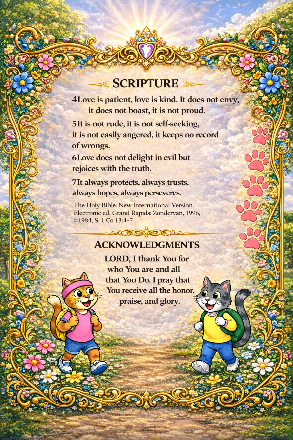 Miss Clawdia is a good-hearted Christian kitty whose feisty, impulsive nature sometimes steers her off course, while Miss Maddie, a gentle and prayerful Christian cat, patiently guides and cares for her younger sister with grace.